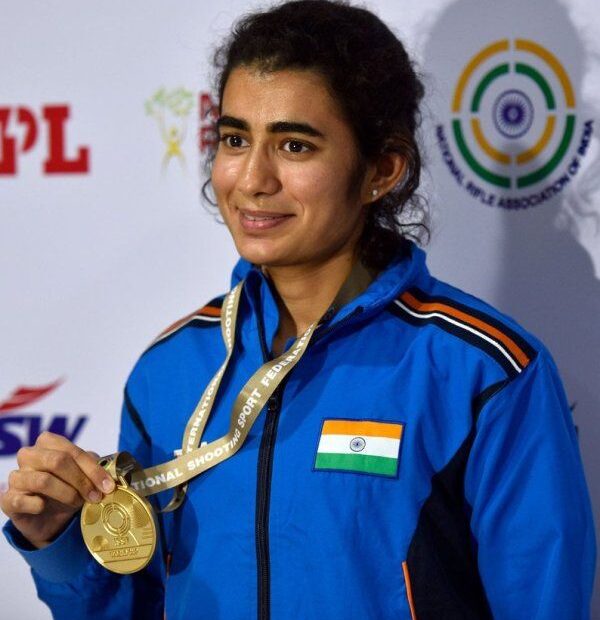 medal recordISSF World Cup • Gold Medal in the year 2019 – 1st place in 10m Air Pistol competition held in Rio de Janeiro • Gold Medal in the year 2021 – 1st place in 10m Air Pistol competition held in Delhi • Gold Medal in the year 2021 – held in Delhi 1st place in Women's 10m Pistol • Team Silver Medal in the year 2019 - 2nd place in 10m Air Pistol held in Rio de Janeiro • Mixed Team Bronze Medal in the year 2021 - 3rd place in 10m Air Pistol held in Delhi • 2021 Mixed Team Bronze Medal in 2019 - 3rd Position in Women's 10m Pistol Asian Shooting Championships held at Osijekow • Silver Medal in the year 2019 - 2nd Position in 10m Air Pistol Mixed Team held at Doha ISSF Junior World Championships • Gold Medal in the year 2017 - 1st place in 10m Air Pistol Asian Junior Shooting Championship • Silver medal in the year 2014 – 2nd place in 10m Air Pistol held at Kuwait City ISSF Junior World Cup • Gold medal in the year 2016 – 1st in Women's 10m Pistol held at Qabala Positions • Team Silver Medal in the year 2016 – 2nd position in 10m Air Pistol held at Suhal • Silver Medal in the year 2016 – 2nd position in Team Women 10m Pistol held at Suhal